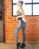 This good quality workout set is perfect to wear to the gym, around the house, running errands, hanging with the girls, watching Netflix (and chilling), and so much more! The grey plain and striped detailing highlight any figure, any body type. You'll want to wear thesewomen's leggings and sports bra set 24/7, 365 days per year.